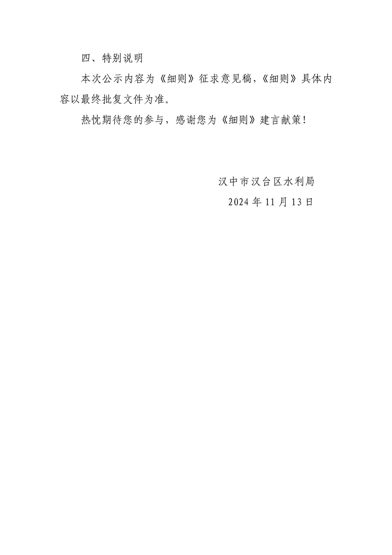 星空电竞app下载苹果版水利局关于征求汉台区农村供水工程县域统管实施细则(试行)(征求意见稿)意见建议的公告