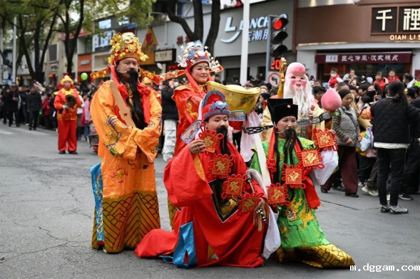 来自汉台龙江的“五福贺新春”队伍,为汉中市民送上新春祝福,祝愿大家新的一年福气满满,让幸福、成功、健康和财富天天相伴。“福禄寿喜财”这五个形象是中国传统文化里的精华,每个字都承载着人们对美好生活的期盼。