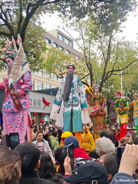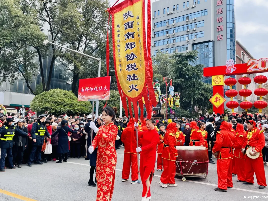 一大早,汉中市北大街沿线人头攒动,数万名当地群众和游客把街道两侧围得里三层外三层,他们呼朋引伴、携家带口寻找“最佳观赏位置”。14点30分,锣鼓声、号子声、喝彩声此起彼伏,绵延1公里的社火游演队伍浩浩荡荡而来,锣鼓、舞狮、采莲船、社火、高跷、秧歌等表演让人眼花缭乱,热闹喜庆的气氛迅速“点燃”整个街区。