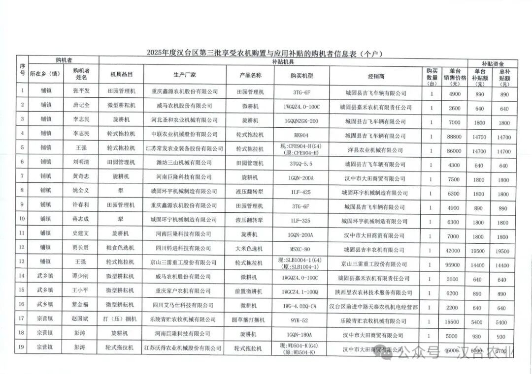 星空电竞app下载苹果版农业农村局2025 年度汉台区第三批(个户)享受农机购置与应用补贴公示