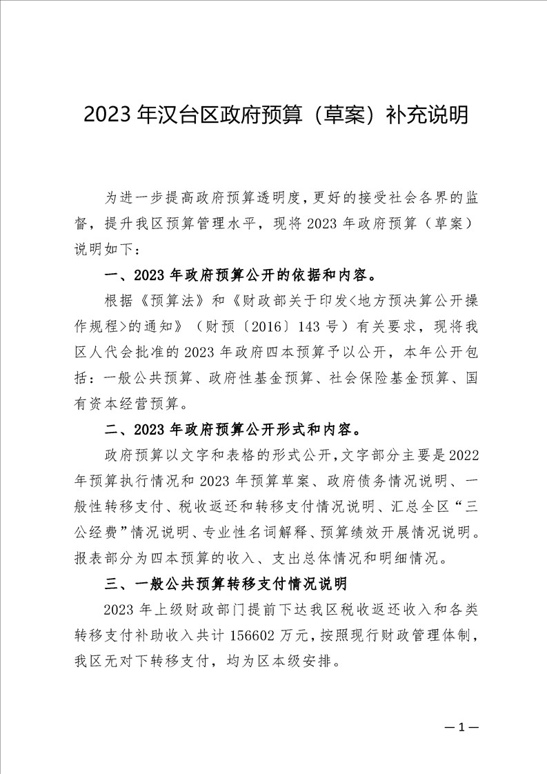 2023 年汉台区政府预算(草案)补充说明