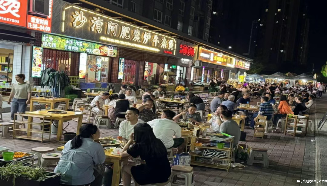 多元业态激发消费活力。街区创新推出"串串+"经营模式,通过串串与饮品、小吃的创意组合,将传统餐饮消费时段从2小时延长至5小时。目前街区内198家商户中,串串火锅类占比高达80%,直接带动500余人就业。毗邻的银滩路集市设置15个特色摊位,营业时间从17:00持续至次日凌晨1:00,与主街区形成"前店后市"的互补格局,共同构建24小时不打烊的美食经济圈。