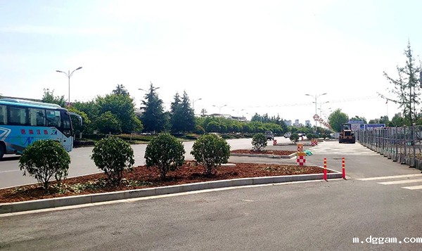 作为市中心城区东西向主干道,兴汉路在原有车道总宽度不变的情况下进行综合改造。通过拆除原机非隔离绿化带加宽机动车道,将双向4车道改造为双向6车道,提升了道路通行能力。同时,实施雨污分流、架空杆线入地、改造人行道和公交站点,配套了交通信号、亮化等附属工程。