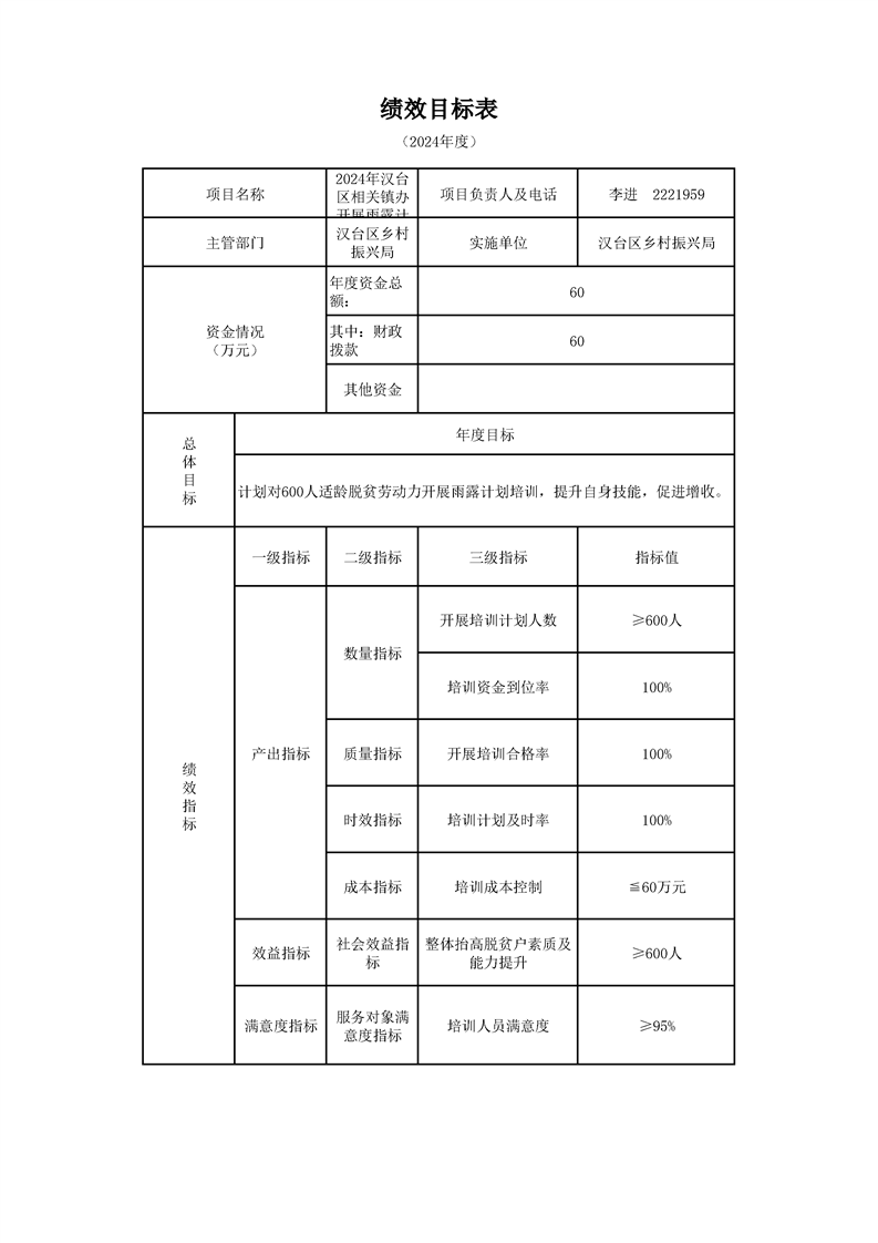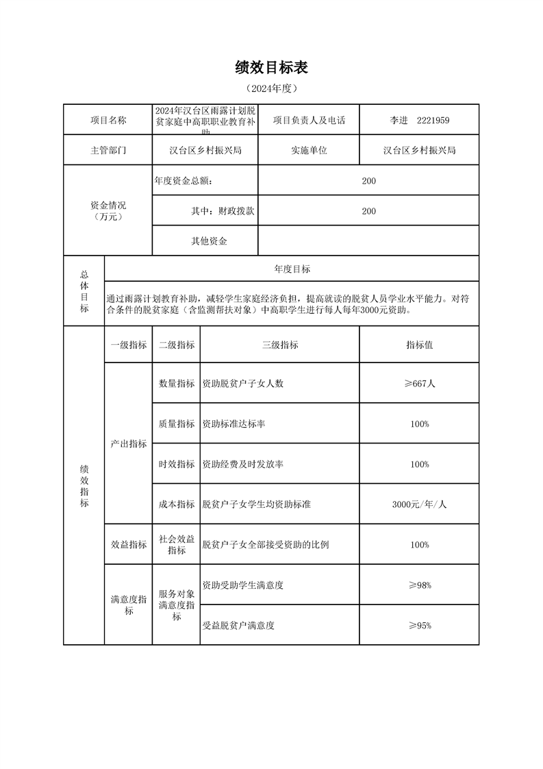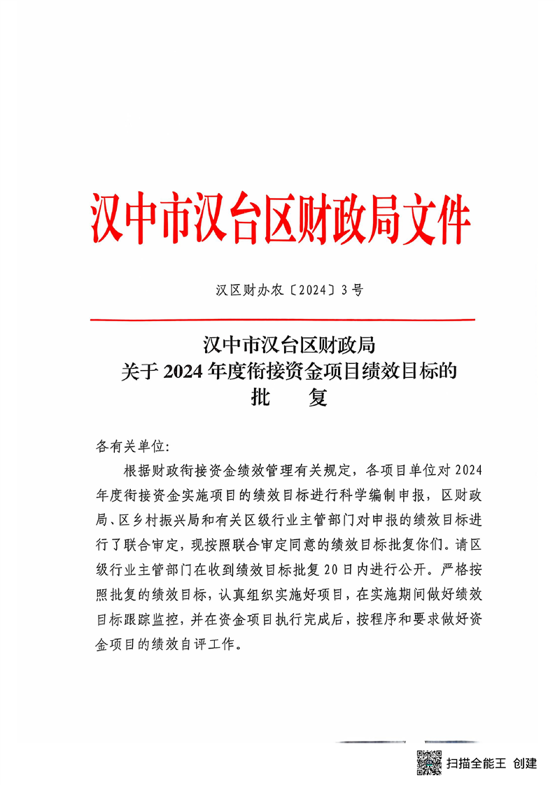 关于汉台区2024年第一批财政衔接资金小额贷款贴息等项目绩效目标公开