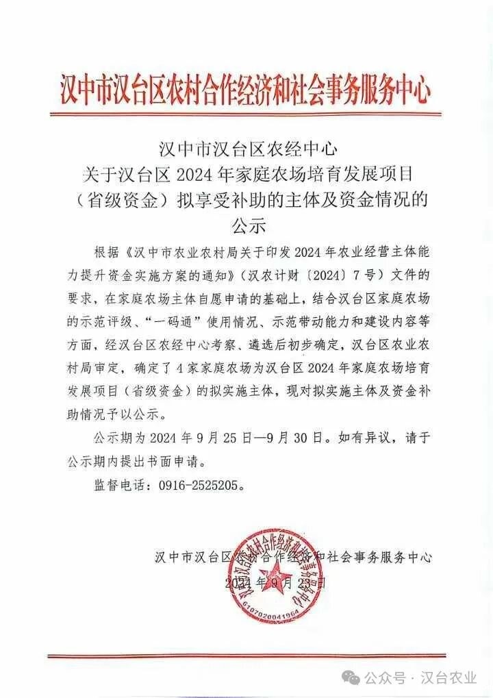 星空电竞app下载苹果版农村合作经济和社会事务服务中心关于汉台区2024年家庭农场培育发展项目(省级资金)拟享受补助的主体及资金情况的公示