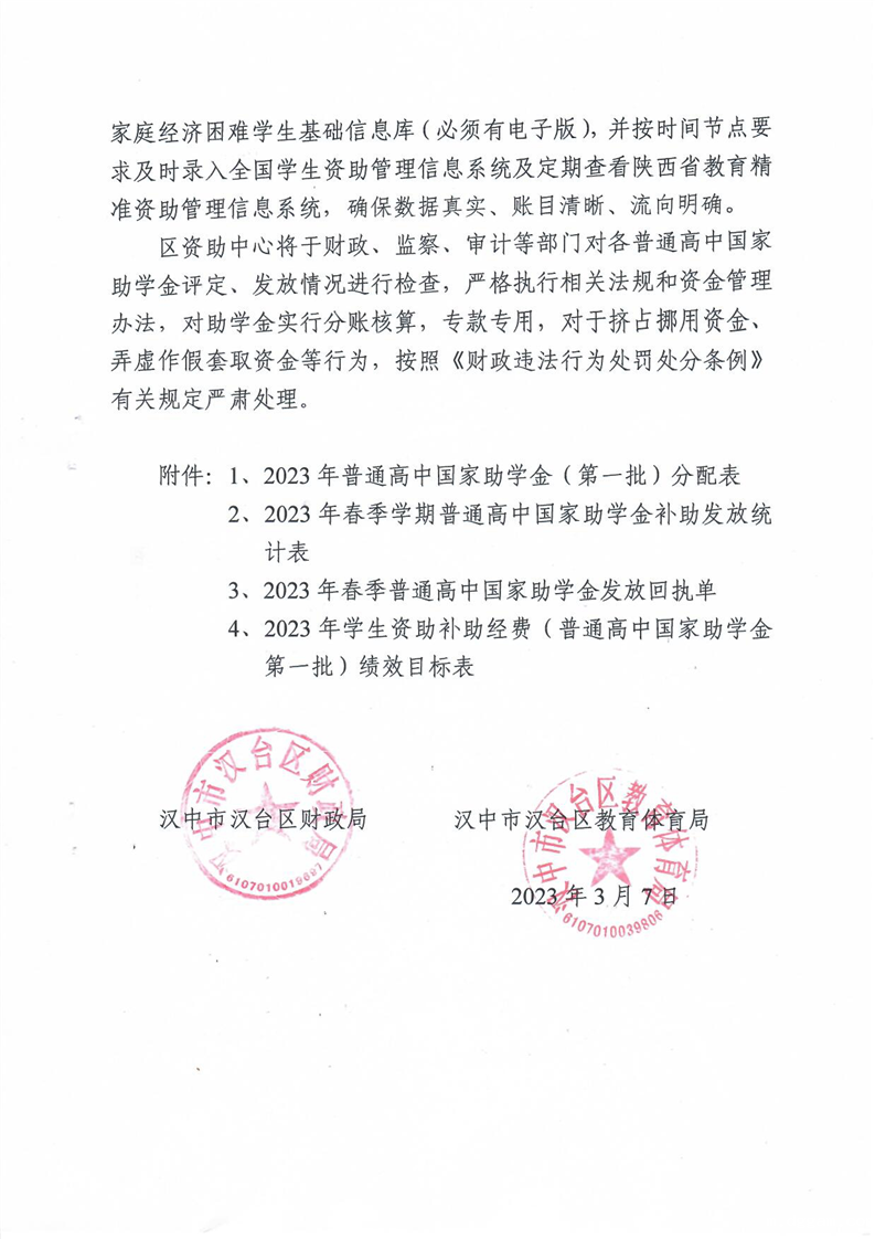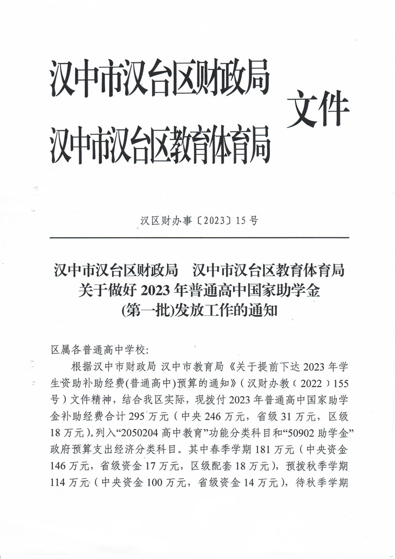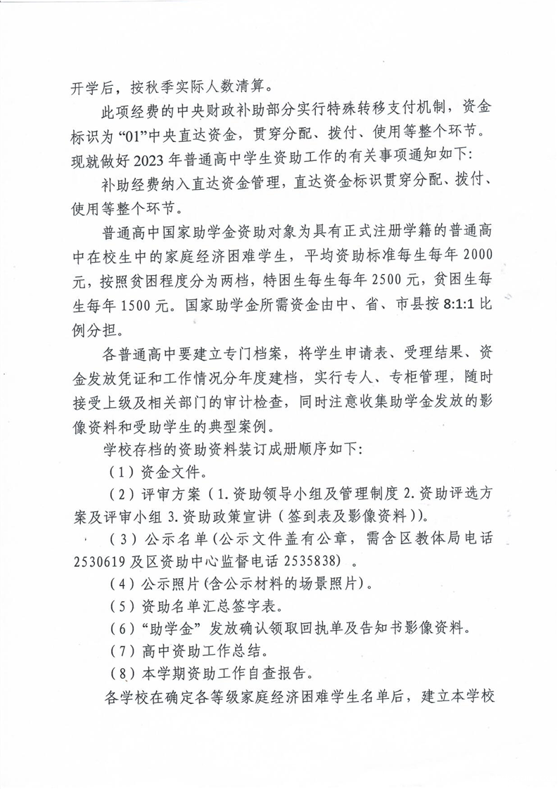 关于做好2023年普通高中国家助学金(第一批)发放工作的通知