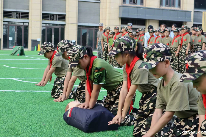 下午国防教育训练中,在教官的严格指导下,一至五年级学生分别学习综合障碍训练、包扎技术、心肺复苏、持枪战术演示和匕首动作等实战技能。
