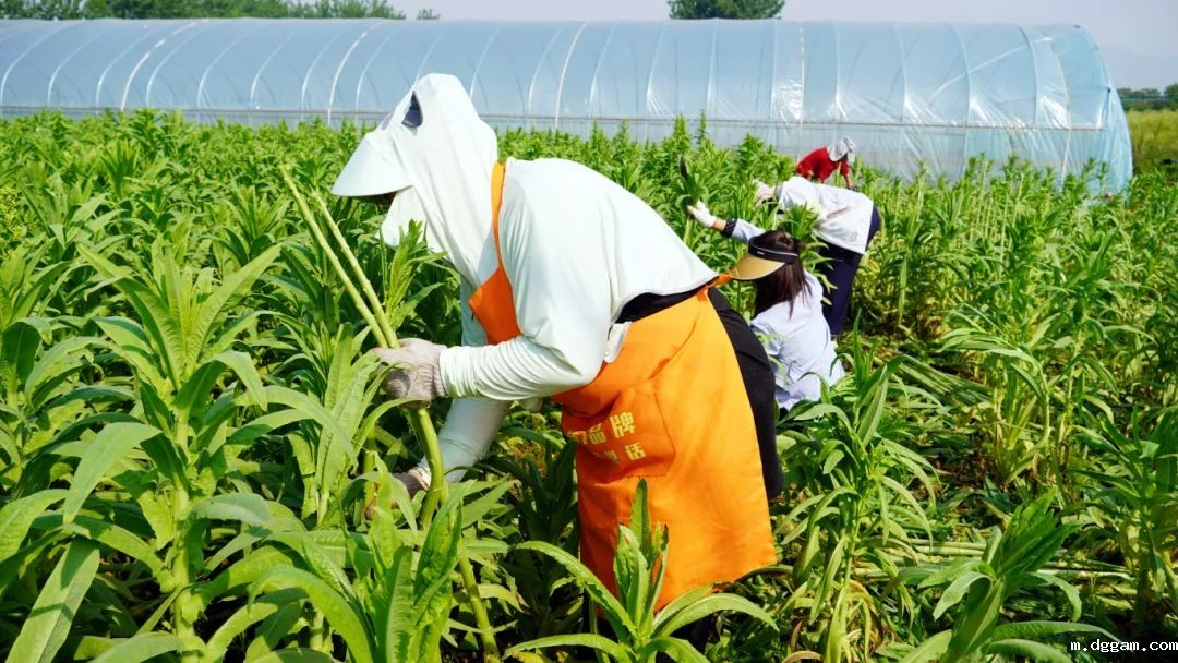 汉中鸿森实业有限公司负责人齐兴翠介绍,今年贡菜长得旺,每亩产量能有七千至一万斤,我们计划收购农户种植贡菜60万斤,加工后主要销往西安、成都等地。贡菜生产加工期间,带动周边务工村民60余人,人均增收2000元以上。