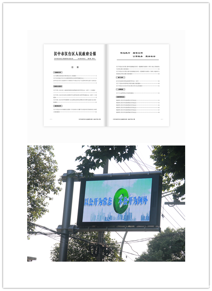 (二)完善政务公开平台。强化区政府网站建设和日常管理,定期巡检软硬件运行情况,持续做好升级维护工作。全年开展网站测评4次,整改存在问题65个,督促各镇办、部门将文件按规定在区政府网站及时发布,顺利通过了国务院办公厅的三次全国抽查以及省政府办公厅的四次全省抽查。积极运用新媒体作为信息公开的有效补充,全年“汉台发布”官方微博微信平台发布信息933条。建成投入正式运行“12345”政府服务热线,全年接办、承办热线工单1425件,办结率100%。设立政务公开查询点3个,编印《区政府公报》3期。定期通过街道LED屏、便民公示栏公示政务信息。