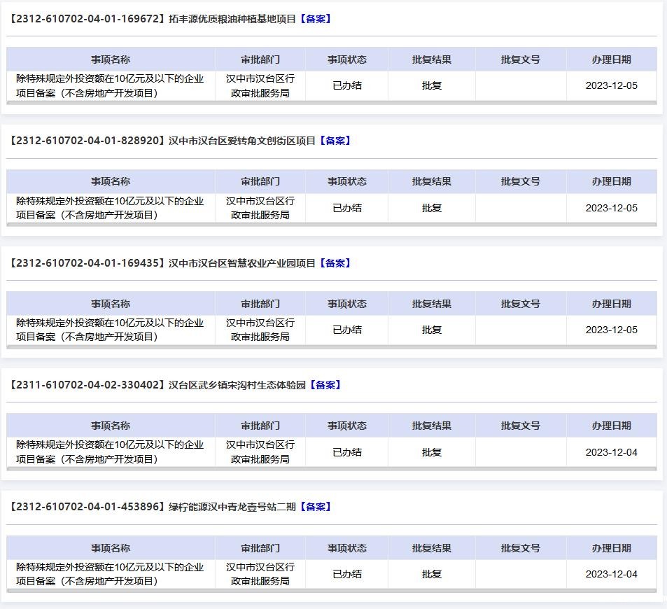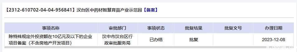 高质量项目审批办理结果